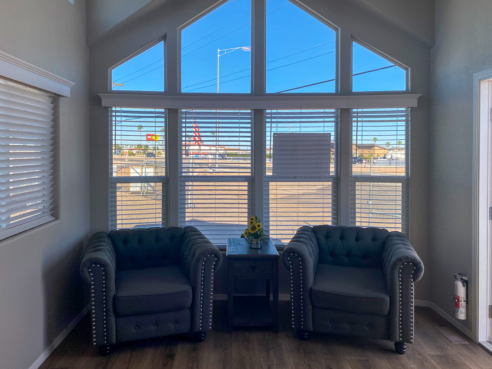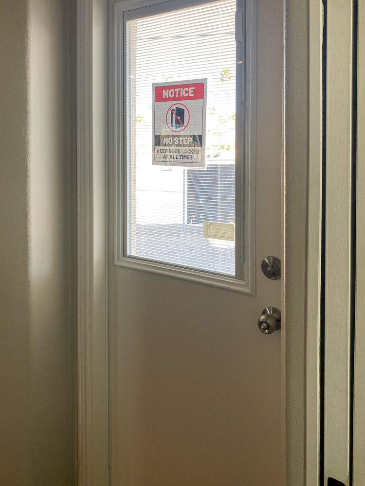 - Rear door with window, mini blind, and deadbolt