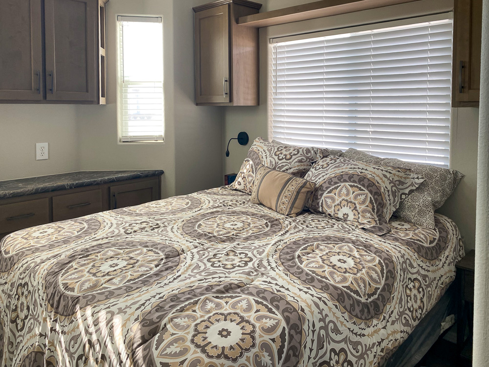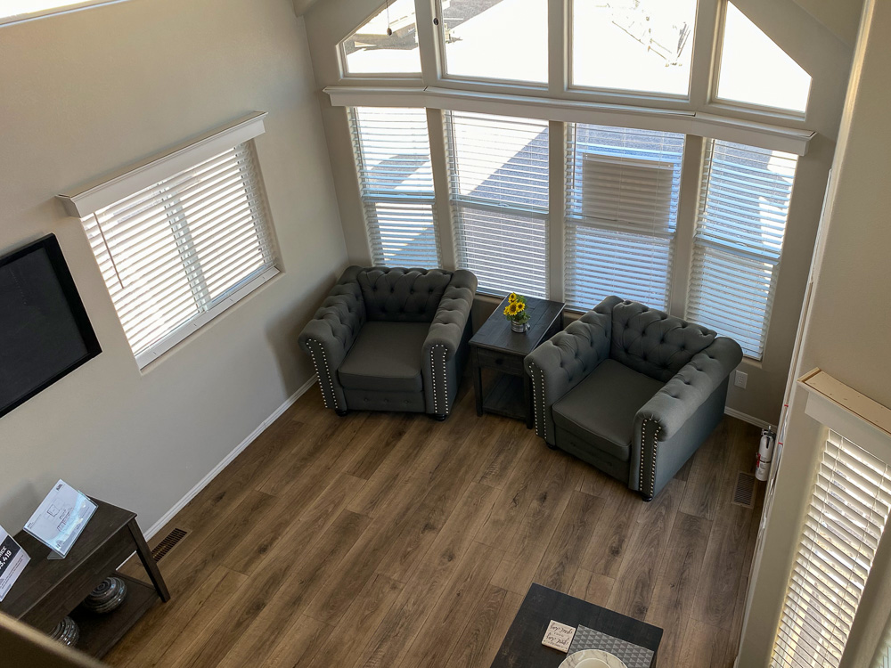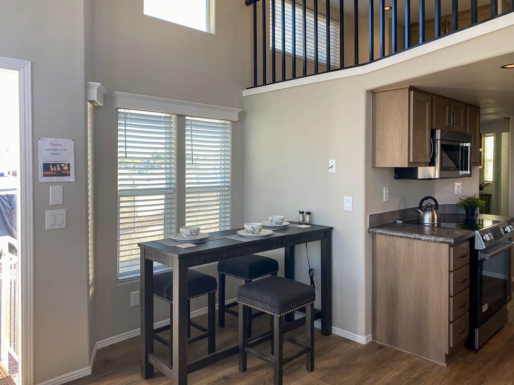 The Belmont model has 1 Bed and 1 Bath. It is a 399 square foot Park Model Loft home.