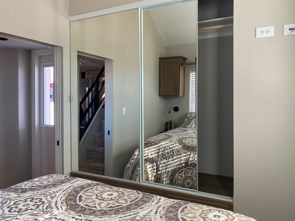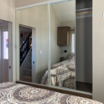 - Full-width wardrobe with mirrored sliding doors
