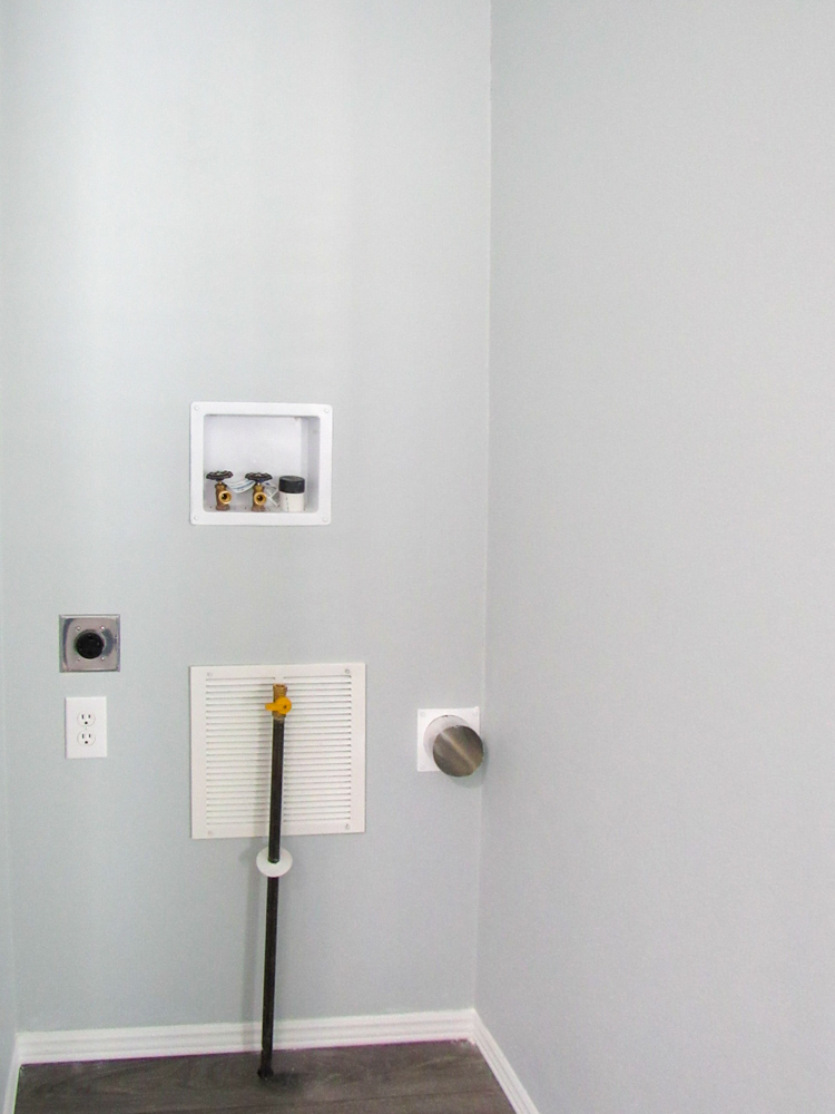 - Black iron gas pipe run to rear of unit