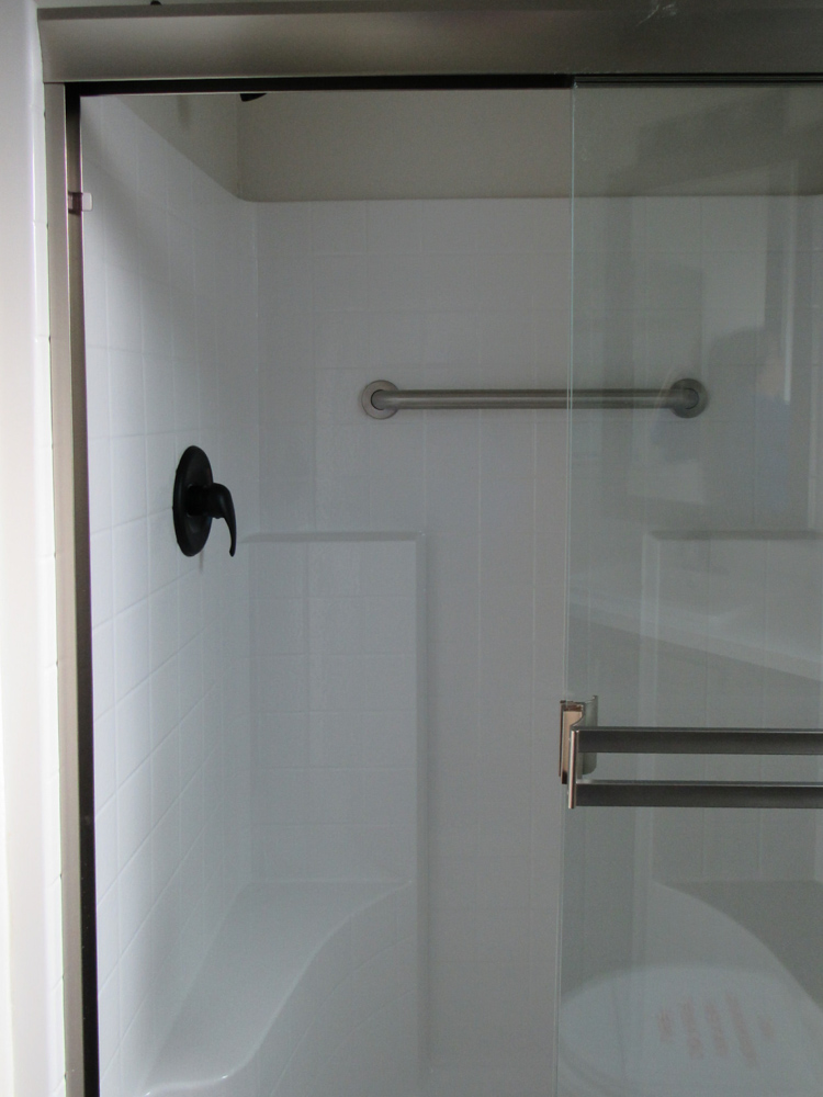 - Choice of 48” shower stall or 54” tub or shower (enclosure is