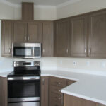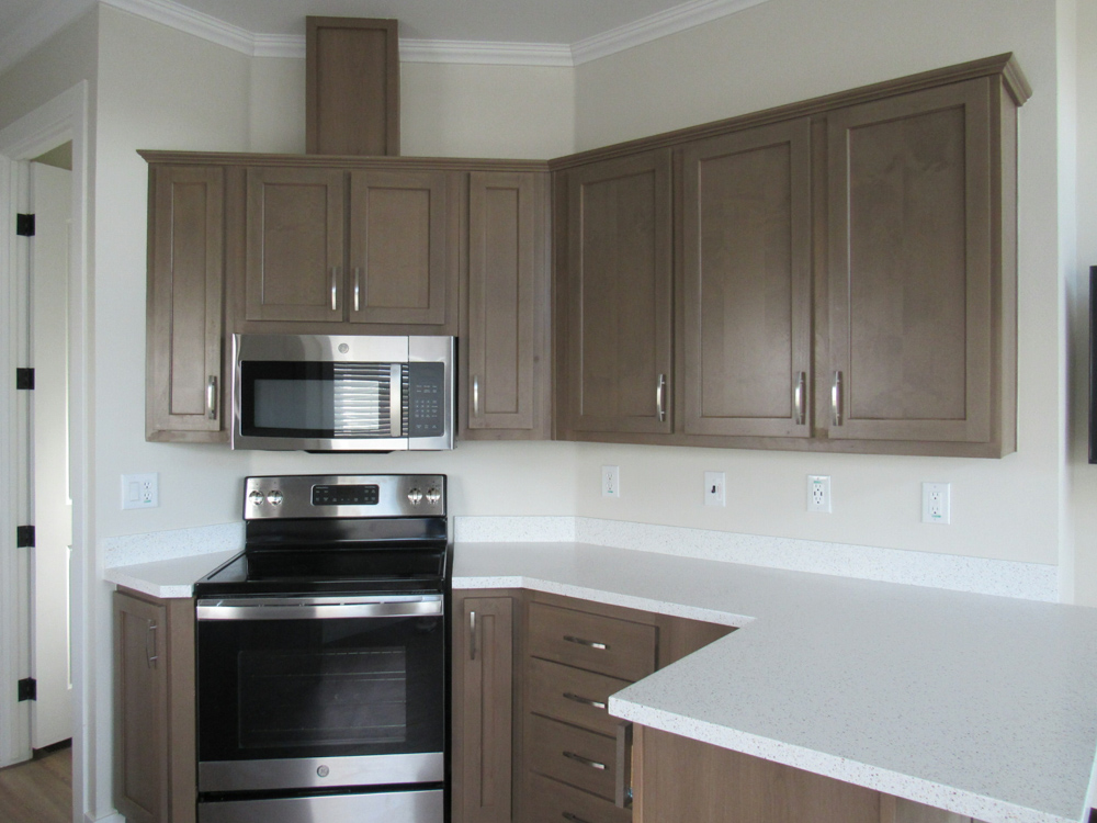 - Matching woodgrain overhead cabinet interiors